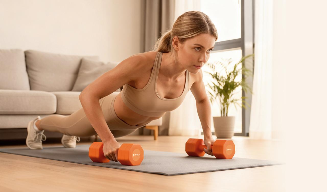 Potrzebujesz tyle przestrzeni, żeby wykonać ruch bez zahaczania o meble i mieć strefę na bezpieczne odkładanie. Jeśli przestrzeń jest bardzo ograniczona, część ciężkiej pracy warto przenieść na hantle regulowane, bo są łatwiejsze do kontrolowania w ciasnych warunkach. - Co jest największym błędem przy treningu samemu w domu?